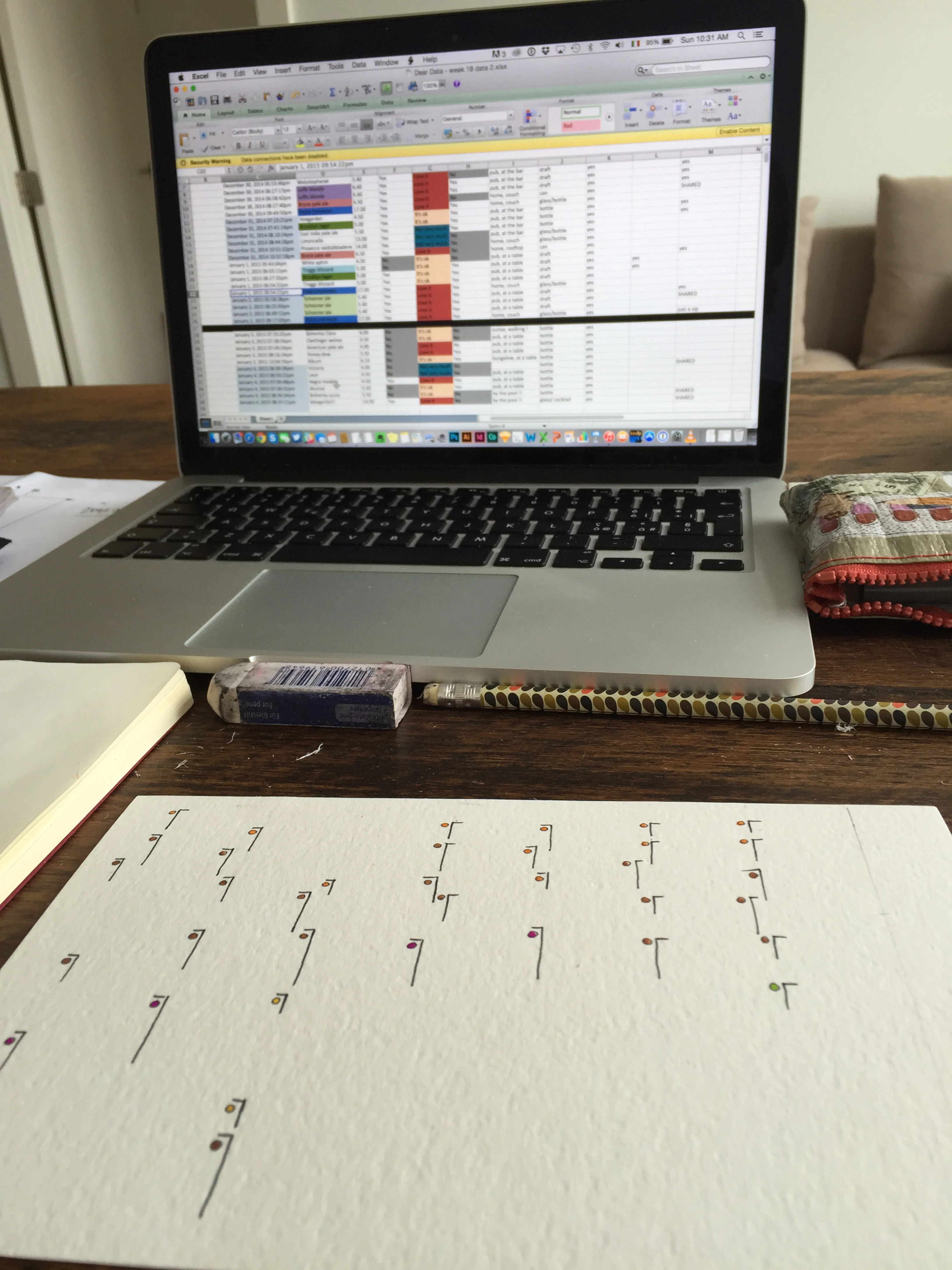 I realized that maybe what I love the most about Dear Data is that it makes this passion of mine concrete: now the data-drawing gets to be the final result! It is the very final output and not just an intermediate phase that than would be re-done digitally.