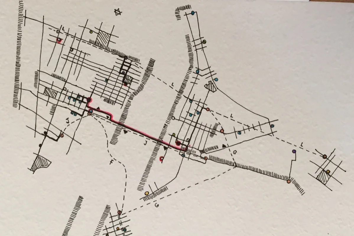The result is for sure not accurate - oh no way, the distances are completely distorted, but I am incredibly satisfied that I got to sit down and do this exercise, as an homage to one of my favorite books and as a inner reflection on my relationship with the place I live in.