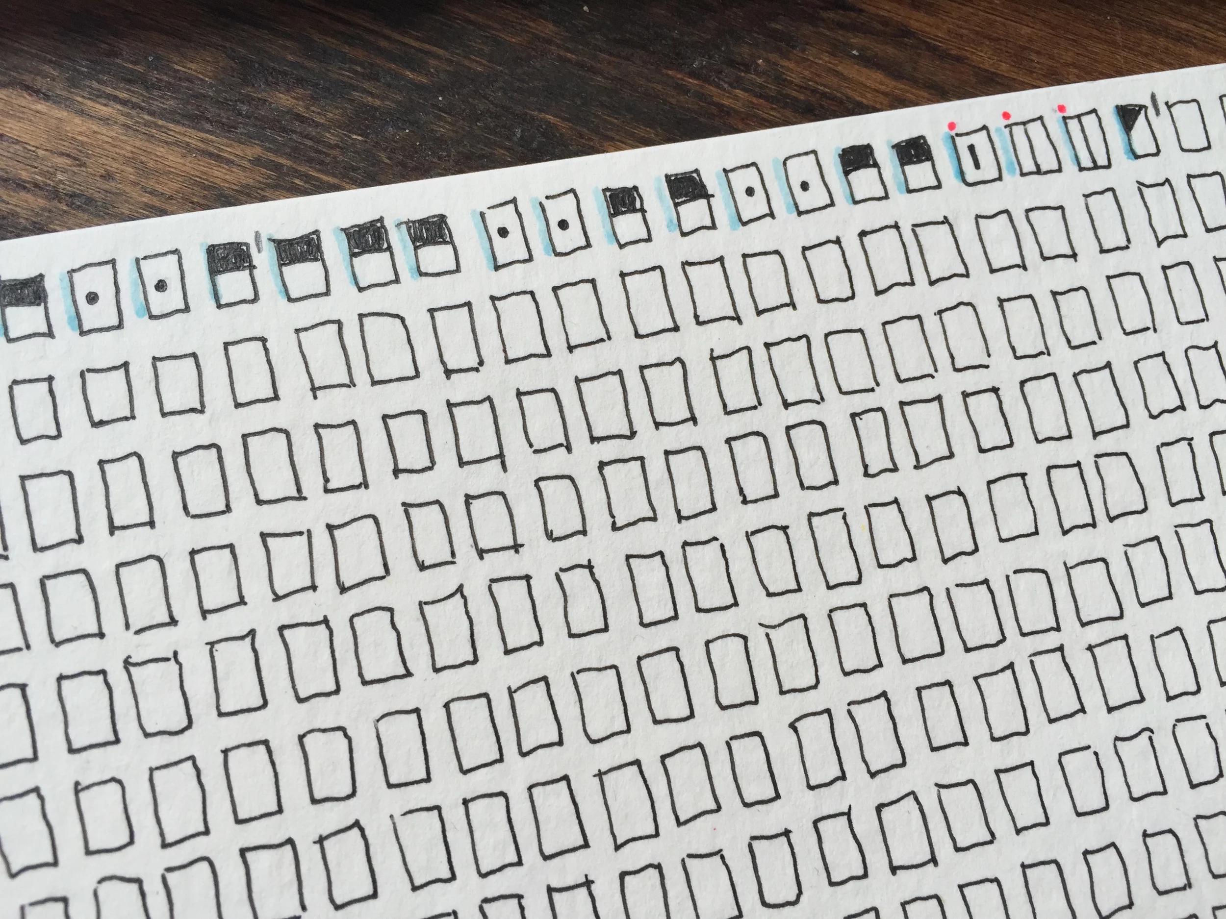 This is quite a simple card, in that it is pretty much just referencing the idea of doors as a flat partition between two spaces, and, to be honest, has a level of complexity for a drawing that I could feel I could fit into my life for that (busy) week… I chose a less-complicated drawing option to cut myself some slack, since the data was more complicated. However, I do still like this drawing because it references tally marks, and I have a particular affinity for tally marks as an example of an ancient (but-still-in-use) system of notation and counting.
