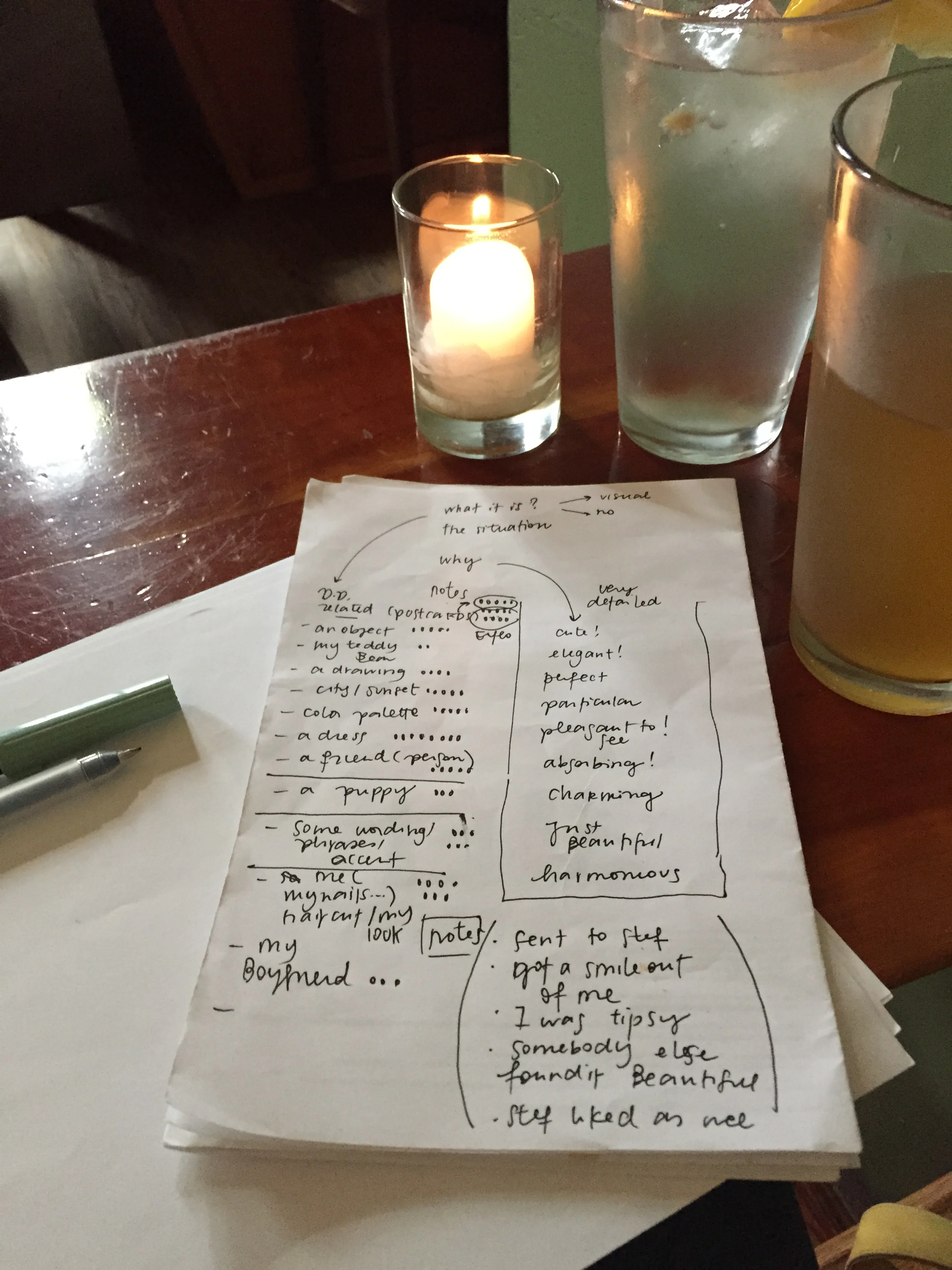 I tracked everything that inspired in me a sense of beauty and I surveyed my thoughts around why did I find it pleasant.
