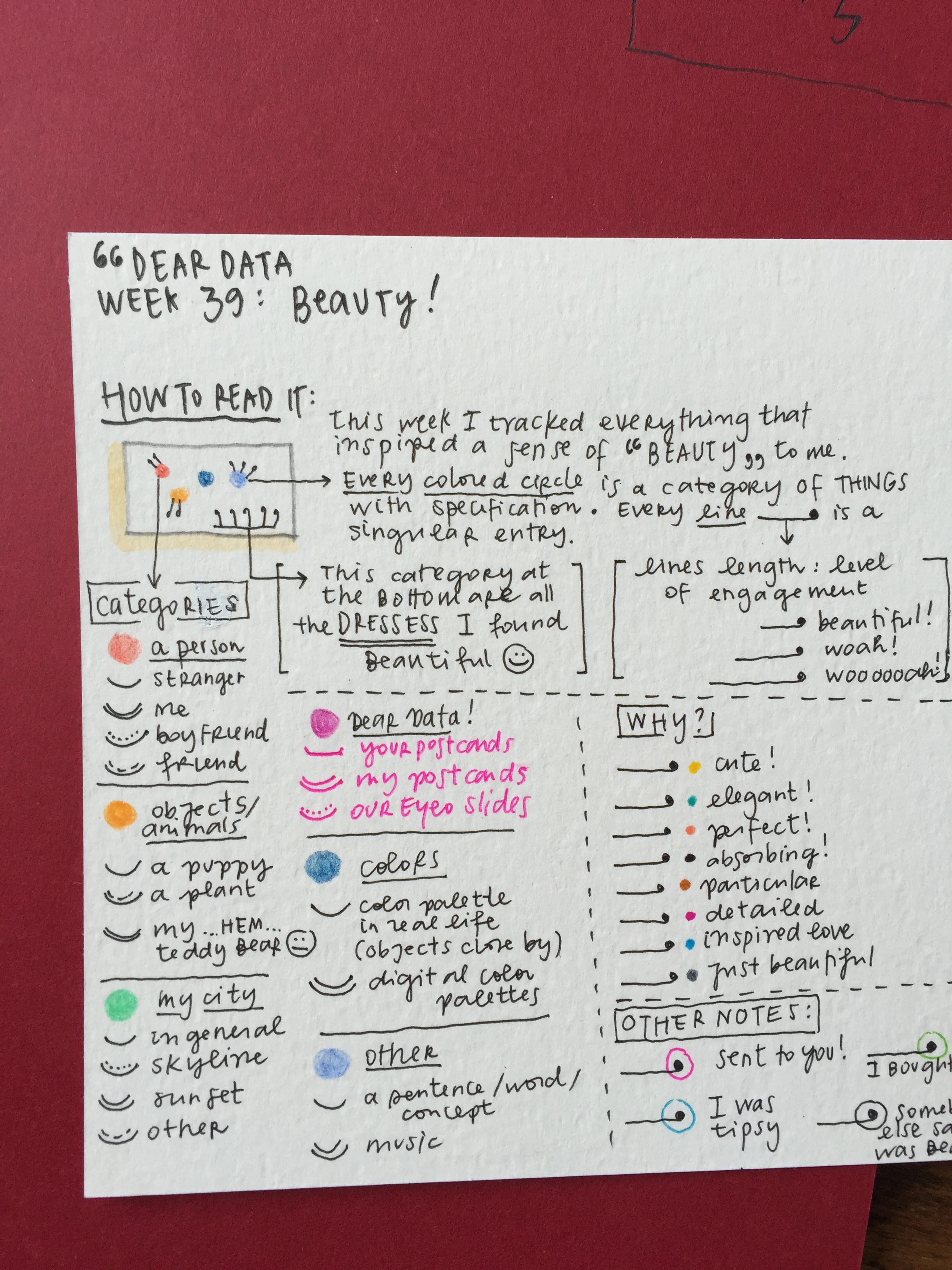 - Dear Data! …Stefanie’s postcards, my postcards, and the visual work Stefanie and I were doing this week on our Eyeo Festival talk;