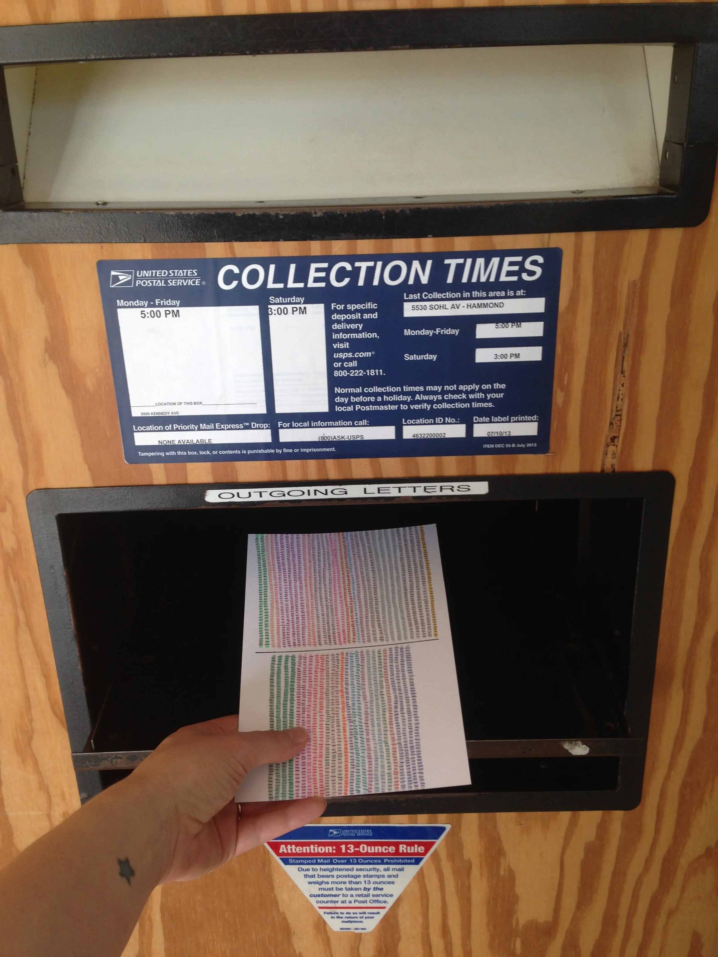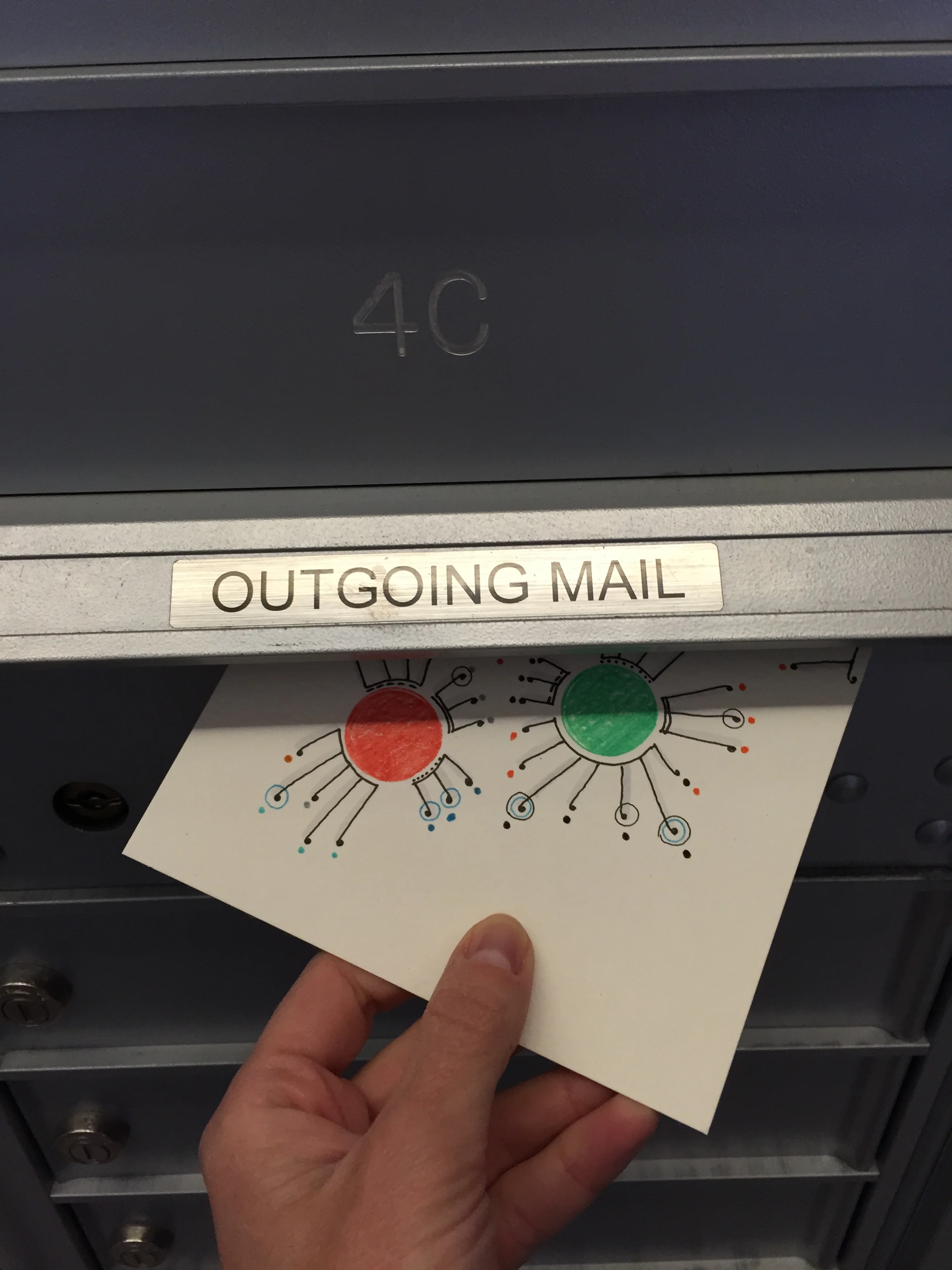 At the end of this week of tracking I caught a flight to Minneapolis where Giorgia and I were to meet for the first time since I saw here in NYC in October, and afterwards I spent time visiting my family outside Chicago, which meant that this week was the first postcard I drew in my American homeland. I was hanging out in my Grandmother’s house, trying to draw a postcard on the bed of my father’s teenage bedroom and getting stressed out in that special sort of way that only happens when you are surrounded by your parents and family and you revert to being a surly 16-year-old teenager again. This is the reason that this card is so simple in design: anything more would have resulted in a teenage-style temper tantrum as I tried to draw a postcard under such circumstances.