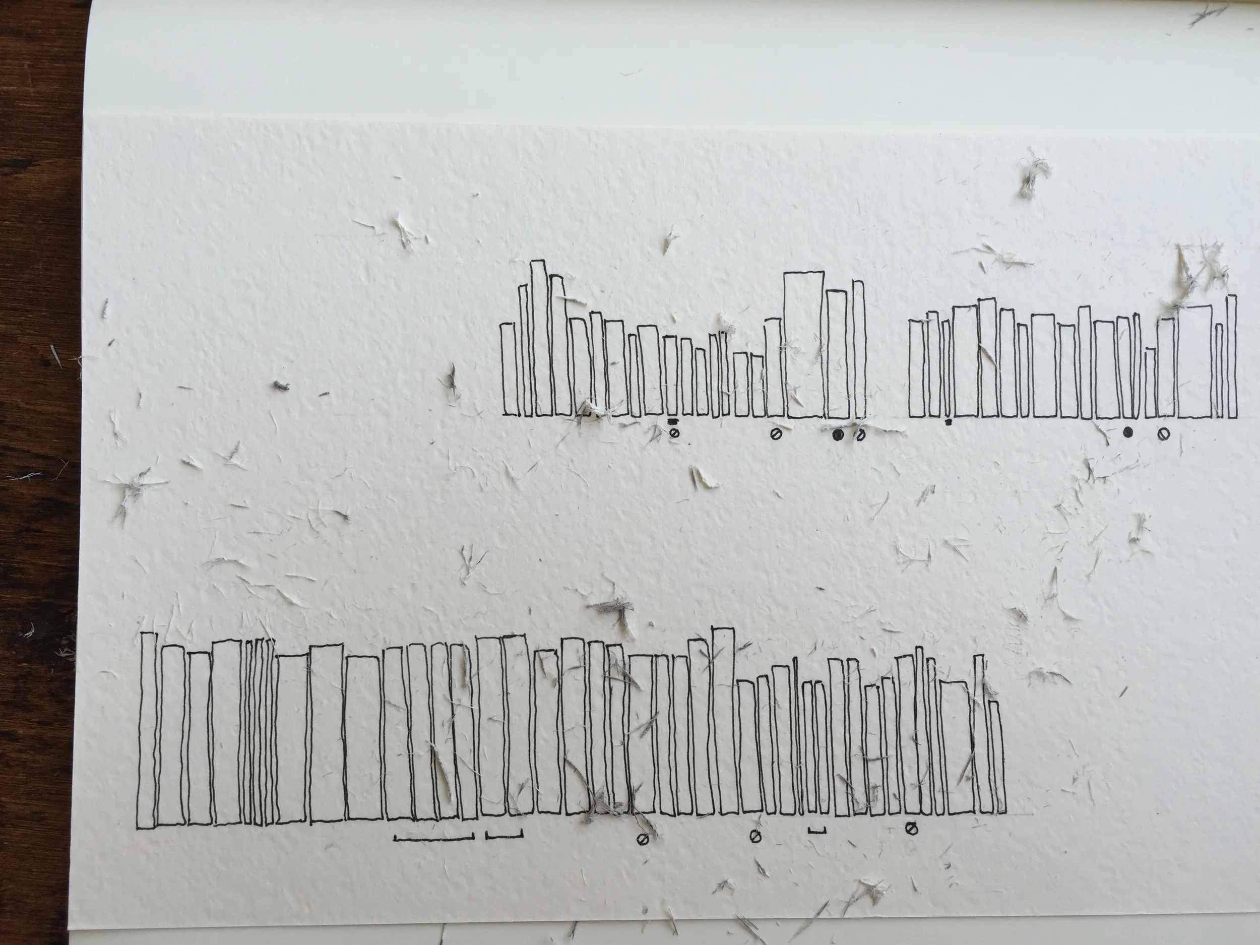 By surveying my bookshelfI came up with different attributes to classify them and to add little symbols to my drawings: