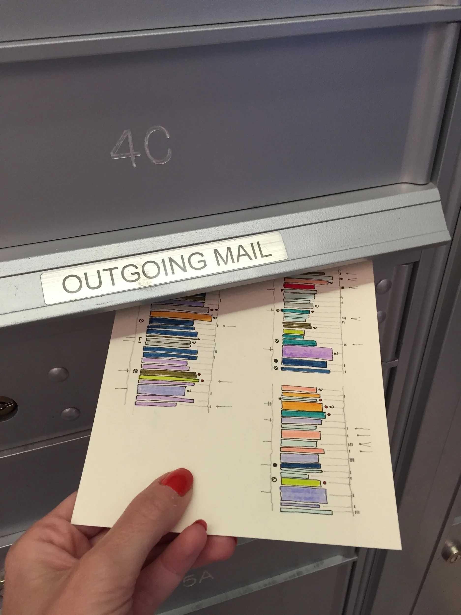 Giorgia’s perfectly-measured drawing is another reminder of her architectural roots, though it’s also pretty evident in the type of books she has in her house as well. My favourite part of the postcard is how you definitely know that this is a ‘working’ bookshelf as opposed to mine (which is more of a time capsule, really): she has post-it notes in so many of her books for reference! I like how such a tiny data point can create such a vivid image in my mind of Giorgia flipping through books at home...